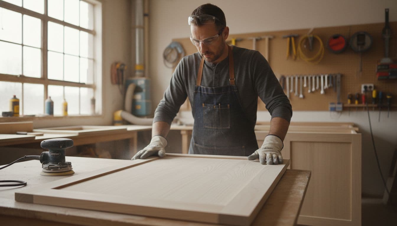 Spray application is often part of a high-end cabinet process because it lays down thin, even coats. That matters on wide panels and detailed profiles where roller marks can stand out.